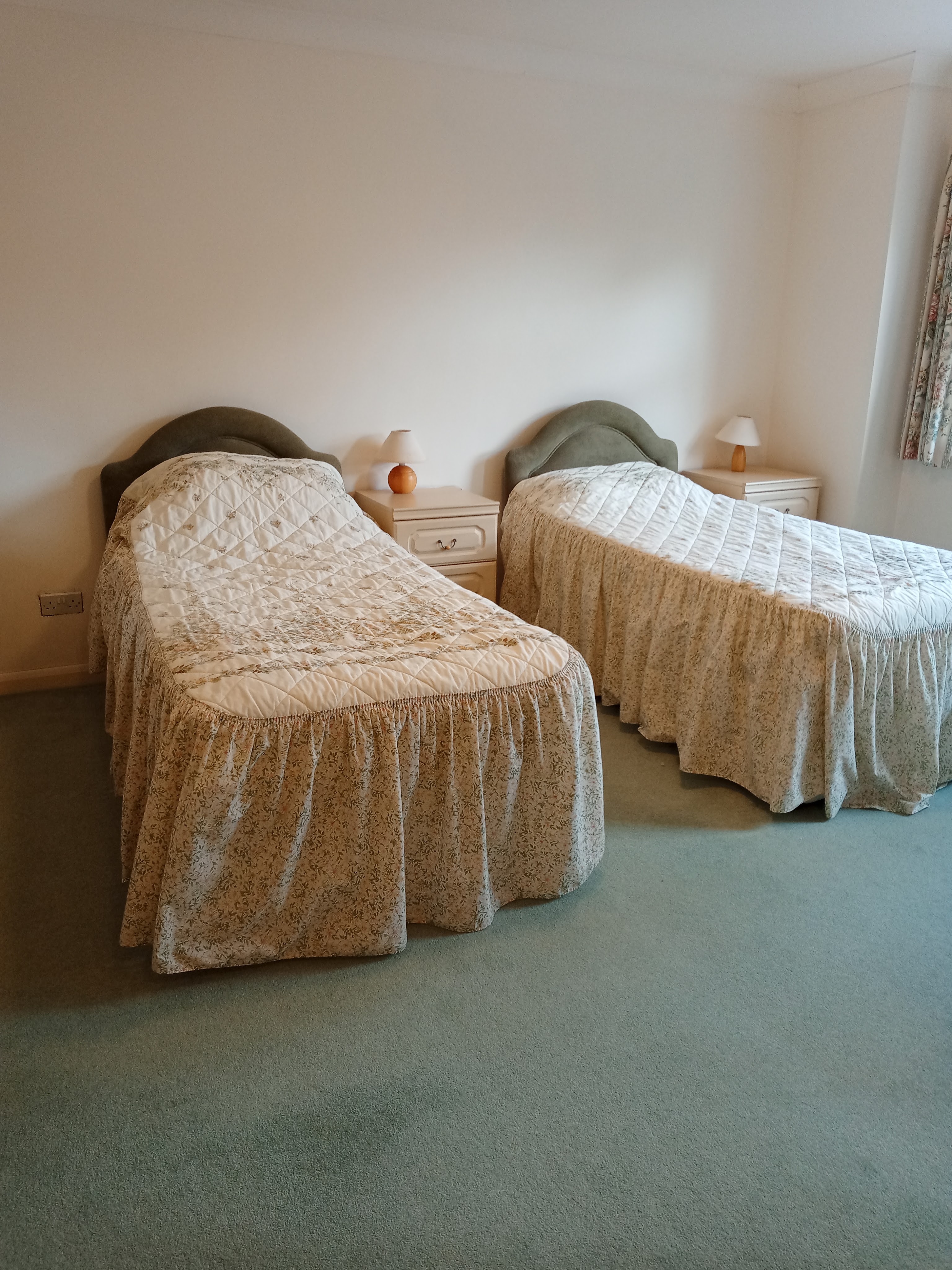 Our comfortable Apartment sleeps five persons. Downstairs is open plan, with a living room and a fitted kitchen with a dining area. The kitchen is equipped with everything you need for self-catering – a self-cleaning oven, ceramic hob, microwave, toaster, kettle and a wide range of pots, pans, cutlery, crockery and utensils. Upstairs, there are two large bedrooms, each with its own spacious shower room. One bedroom sleeps three persons in three single beds. The other bedroom sleeps two persons in two single beds. The bedrooms have fitted wardrobes and dressing tables. Free fibre broadband.